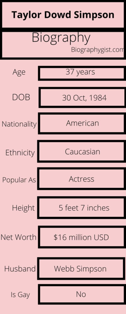 Taylor Dowd Simpson is a well-known American figure. Taylor Dowd Simpson is an American actress who shot to fame after dating Webb Simpson. Webb is a PGA Tour professional golfer. At the same time, he has won numerous titles over the course of his career.